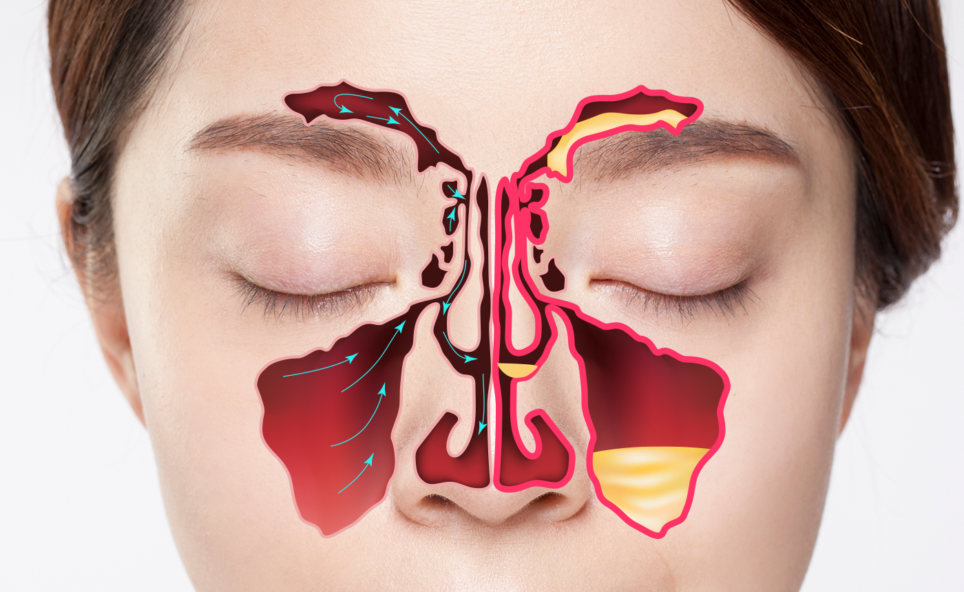 코 주위 얼굴뼈 안에는 부비동이라는 빈 공간이 있는데, 이는 작은 구멍으로 코 속과 연결되어 있습니다.